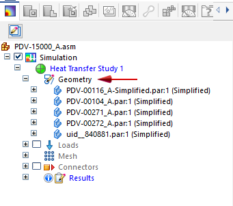 在仿真窗格中,展开几何体节点。