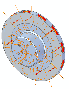 为进行散热,将对流载荷应用于刹车盘的所有表面(除已经应用热通量载荷的表面之外)。