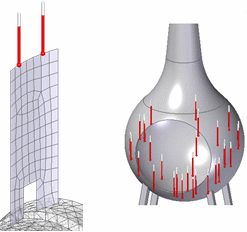 可以使用命令条上的翻转方向按钮更改对流载荷的默认方向。默认情况下实体面或曲面上的对流载荷应用时采用正法线方向。可以使用按钮将载荷转到反法线方向(相反一侧)。