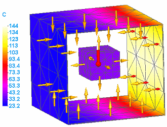 在稳态热传递研究中,在一个实体(边、点、曲面、部件)上应用热载荷时,结果将显示传导热的零件,直到它处于热平衡。