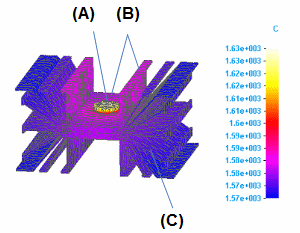 热通量载荷应用于反射来自热源 (B) 的热的曲面。