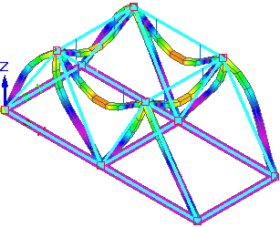 显示使用梁网格类型从结构框架模型的线性静态研究生成的梁图。