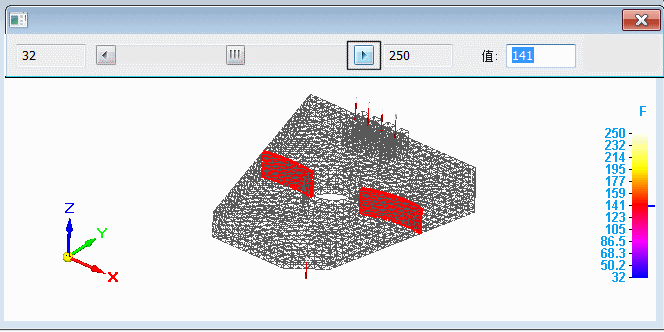 会将等值云图线或等值云图面动态移动穿过模型,从而显示特定温度的横截面。这对可视化每个等值云图的颜色级别范围及其对应的结果值十分有用。