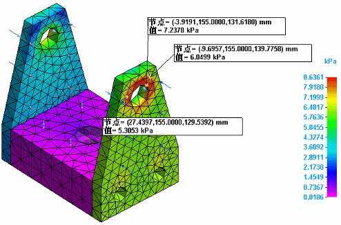 在仿真结果环境中使用探测命令可显示模型中每个结果节点的分析值、位置和相对位移。