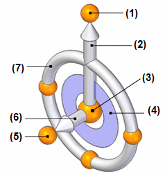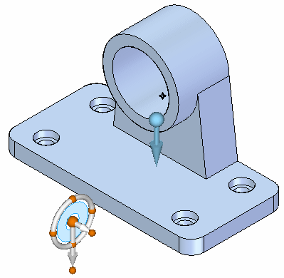 单击方向盘原点 (5) 可将工具拖动到模型上的任何位置。再次单击时,它将固定到该点、面或边。