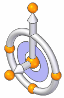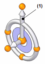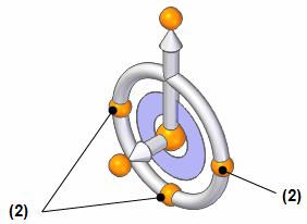 可以单击方向盘上的基点 (2),以在相同平面中通过以 90 度增量来自动重定向长轴。