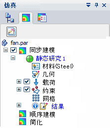 例如,通过单击路径查找器中的简化节点将其激活,然后选择仿真选项卡→研究组→新建研究命令,可以为简化零件创建新研究。