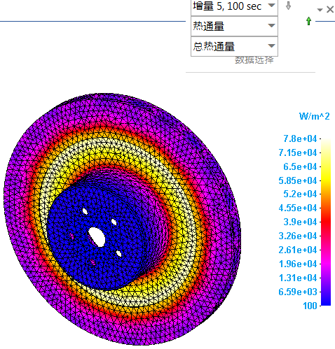此瞬态热研究的目标是识别刹车盘随时间的最高温度,并确认热应力不超过零件的最高工作温度。