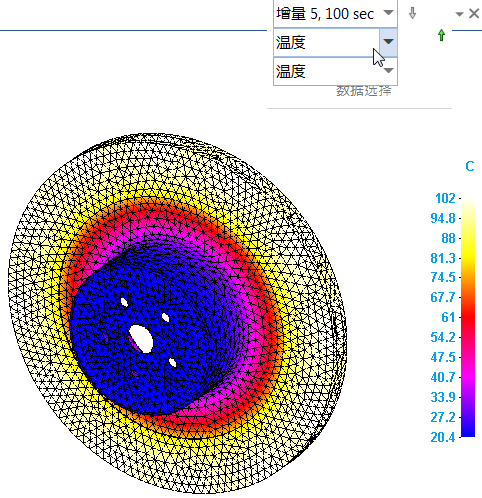 针对显示最高温度区域的输出增量显示结果图。可以使用主页选项卡→数据选择组中的列表执行此操作。