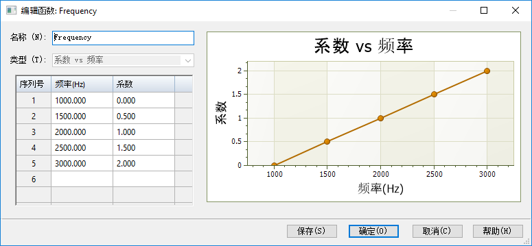 在频率 (Hz) 列中输入的值应基于受关注频率。