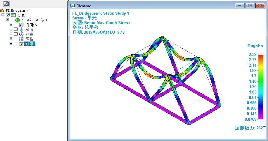 默认应力图显示在图形窗口中。