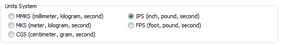 选择 IPS(英寸、磅和秒)以更改为英制单位制。