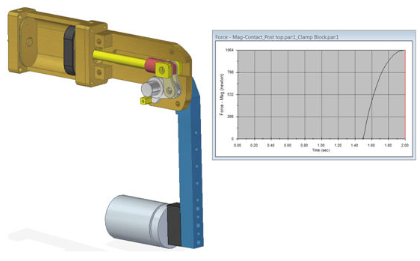 对运动进行仿真。该仿真将运动模型分解为一系列已求解的数学方程式。求解器使用精确的牛顿运动定律计算每个零件的位移。然后,可以在结果中显示这些物理量。