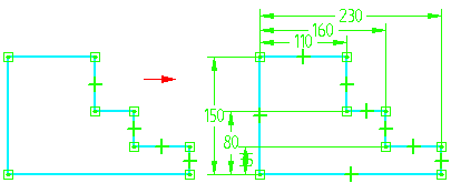 使用此选项时,选择一个或多个受约束或彼此相关的元素,而不是多个独立元素。图形窗口中出现一个临时图像,其中显示形状会如何变化的一种可能性。