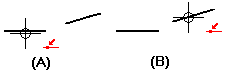 单击一条直线 (A),然后单击另一条直线 (B)。一条直线将移动到与另一直线共线 (C)。