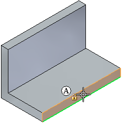 在使用支持手动草图平面锁定的命令的情况下,当光标处于平的面或参考平面上时,光标附近将显示一个锁定符号 (A)。可单击这一符号来手工锁定平面。