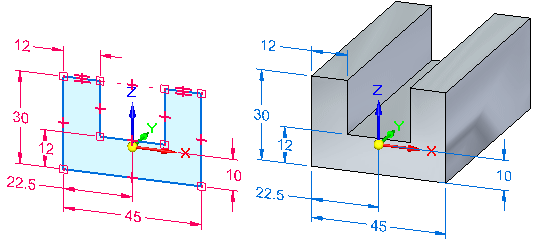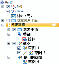 可在基本坐标系的主平面、模型上的平的面或参考平面上绘制同步草图。然后可使用这些草图创建基于草图的特征,如添料或除料的拉伸特征。