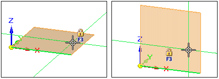 (可选)在锁定草图平面之前,可通过按 N(下一步)、B(返回)或 P(基本平面)键更改 X 轴的方向。