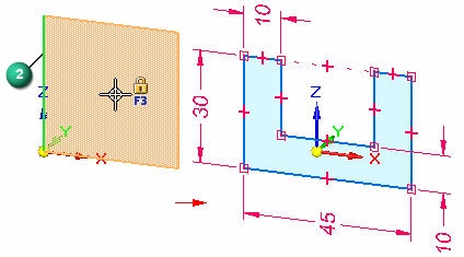 通过按 F3 或在图形窗口 (1) 中单击锁定符号来解锁当前草图平面。