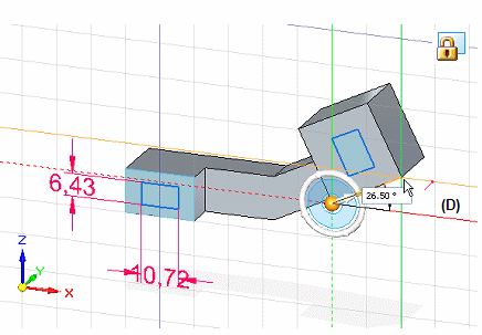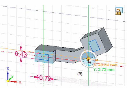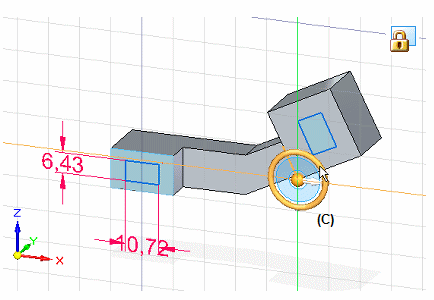 移动方向盘的另一种方法是按住鼠标左键,同时将其沿边或草图几何元素拖到任意位置。