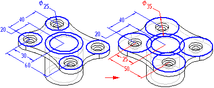 您复制的草图元素与草图关联并将在编辑草图尺寸时更新。