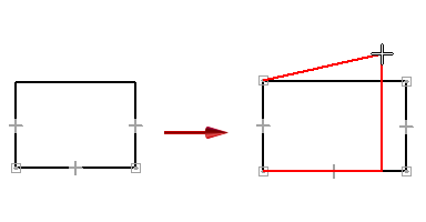 示例:您可以拆离并移动一个矩形中某条直线的一个端点,并让另一个端点保持连接。