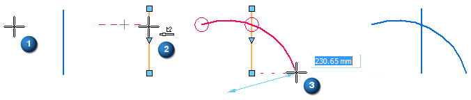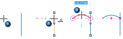 如果弧的第三个输入点位于前面两点之间,则将该点解释为弧的中点,使第二个输入点成为弧扫掠的一个端点。在这种情况下,该点将是可约束的点,“智能草图”将会在元素关系中保留该点。