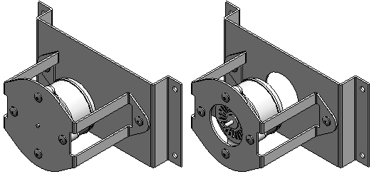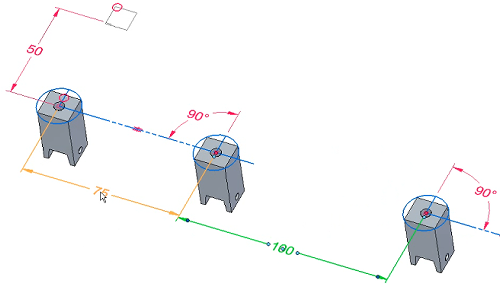在此示例中,在装配草图中将 60 毫米尺寸的值编辑为 75 毫米。因为使用 2D 连接关系使滚子零件受限于装配草图,因此编辑草图尺寸时会更新滚子的位置。