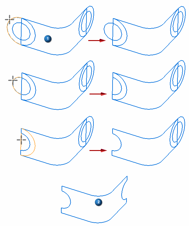 可以删除位于相交草图段之间的段或任何不相交的草图段。