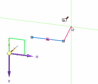 绘制直线时,如果直线的第二个点位于其中一条对齐线上,将显示一个平行图标