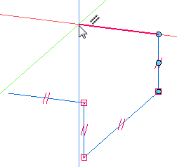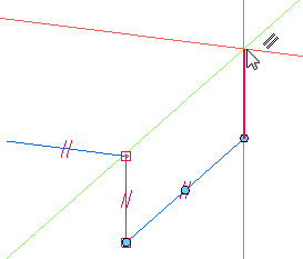 向下移动光标。将光标移至与蓝色对齐线接触的位置(Z 方向)。当平行图标显示时,单击鼠标。