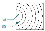 示例:如果间距=3,并且主/从轴比=2,则对于第一个椭圆 (A),主轴值也为 3,从轴的计算值为 1.5。