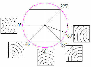 示例:水平居左垂直居中的径向图案的零度位于负 X 轴上。以逆时针方向增大角度,如下例所示。