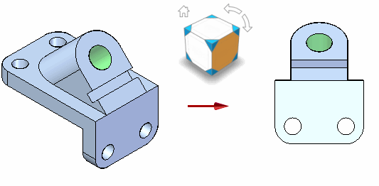使用正视面命令以通过平面或参考平面定义视图方向。视图已旋转,使选定面与视图方向垂直,并与计算机屏幕平行。