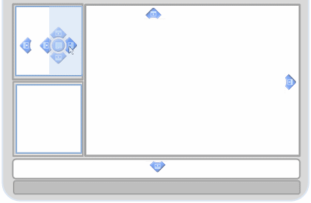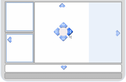 停靠标签位于整个应用程序窗口的边界上,可以沿着应用程序窗口的顶部、底部、左侧和右侧精确停靠窗口。将停靠窗口拖到停靠标签时,一个着色的矩形将显示窗口范围和位置的动态预览。