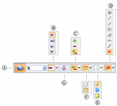 选择如孔、倒圆或薄壁(不仅仅是几何体)等命令时,也会显示命令条。显示的选项根据命令而变化。