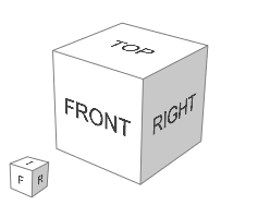 要设置快速查看立方体的大小,请使用 创物3D 选项对话框的助手选项卡中的方向盘、快速定向和查看立方体大小列表。立方体的大小范围从小到超大,如下所示。默认大小为中等。