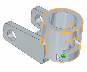 如果选择圆柱面,然后将光标放置在选择管理器菜单的同心选项上,则与所选面同心的所有面将高亮显示,这样您可以预览选择标准。