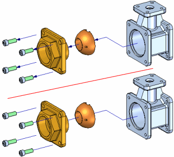显示或隐藏爆炸零件之间的飞行线上的端符。