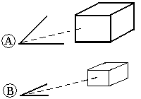 您还可以创建透视图像,以使零件和装配看起来更加真实。您有好几个透视设置可用。这些设置值参考的是 35mm 照相机镜头焦距。随着角度的增大,离物体的距离缩短,使物体看起来更近。例如,第一幅图 (A) 中的角度比第二幅图 (B) 中的角度宽,因此第一幅图显得更近。
