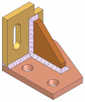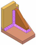 为添料特征添加焊接标注时,特征的颜色更改为“焊缝”颜色。这种颜色更改便于您了解哪些添料特征仍需要焊接标注属性。