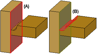 要构造坡口焊特征,必须定义一组基本面 (A) 和目标面 (B)。对于某些坡口焊特征,这是所需的所有输入内容。