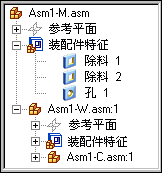 将 Asm1-W.asm 放置到另一个新装配中,然后添加焊接后机加工特征。将该装配命名为:Asm1-M.asm。