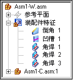 将 Asm1-C.asm 放置到新装配中,将其标记为焊接,然后创建反映表面预处理机加工的特征和焊缝特征。将该装配命名为:Asm1-W.asm。