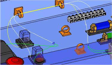 单击要添加到线扎中的导线(电线、路径或电缆)的端点,然后单击命令条上的“接受”(勾号)按钮。单击的端点定义线扎的起点。
