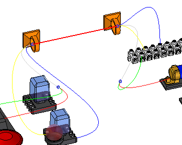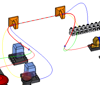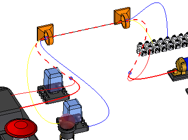 注意:高亮显示的电线以纯色显示,直到该电线成为电缆的一部分。此时,屏幕显示一条虚线。另请注意:虚线的颜色会在电缆和电线成为线扎的一部分时发生变化。