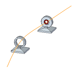 重排穿过零件上圆形面的现有连线或管件路径。选择路径,然后选择路径将要穿过的零件上的圆形面。路径重排完成后,按 F 键可翻转穿过圆形面的路径的方向。
