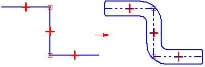 修改 2D 元素时,带有保持的关系元素会自动更新以保持关系。例如,如果移动与另一元素存在平行关系的元素,另一元素会根据需要移动以保持平行。如果一条直线与一个圆弧共享相切关系,则无论修改它们中的哪一个,它们都保持相切。