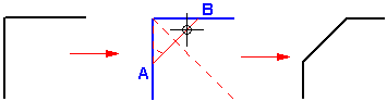 可以在两个线性元素之间绘制倒斜角或斜角。可以控制倒斜角角度和两个元素之间的回切距离。