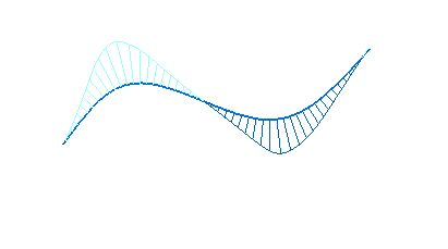 控制曲线的曲率梳显示。这有助于确定曲线如何快速或逐渐变化以及曲线在何处变向。